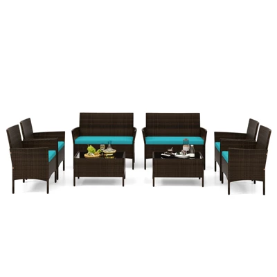 Crafted with exquisite and long-lasting woven rattan and supported by robust metal frame, this set features both stability and longevity. The set includes a loveseat and 2 sofas with ergonomically curved armrests and high backrests, ensuring maximum comfort. Accompanied by a coffee table featuring a spacious glass top, your essentials are always within reach. Perfect for any outdoor setting like backyards or poolside retreats, this beautiful rattan ensemble is a prime choice for those seeking a tranquil oasis.