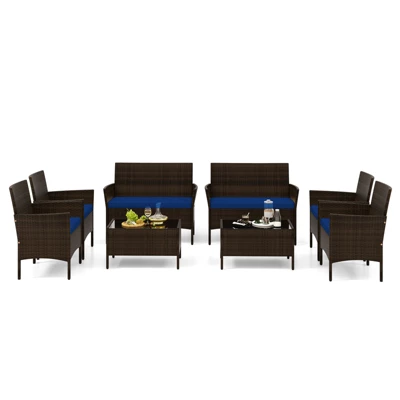 Material: PE Rattan, Metal, Tempered Glass, Polyester, Sponge