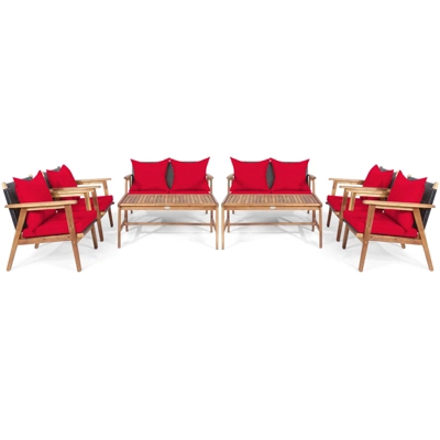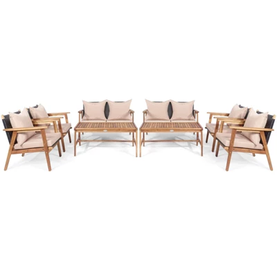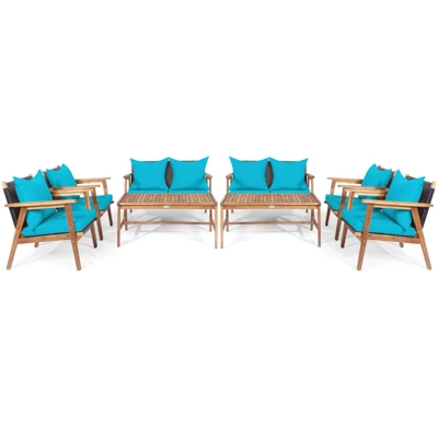 Material: Acacia Wood, PE Wicker, Steel, Polyester, Sponge