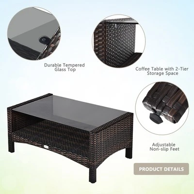 - Sturdy Frame & Hand-Woven Rattan: This patio furniture set is made with a powder-coated steel frame and all-weather PE wicker for a comfortable experience. Besides, high quality rattan is weather-resistant and fade-resistant, which ensures that this furniture can service you long time. Adjustable non-slip feet enhance extra stable.