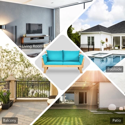 If you want to enjoy the sunshine or take a rest in your patio or garden,you can’t miss our wooden sofa daybed. With the help of armrests on two sides,this furniture features 3 adjustable positions,working as a loveseat,a lounge chair or a bed to meet your different needs. It is made of premium acacia wood,which makes it sturdy and long-lasting enough to serve you for a long time. There are thick cushions and soft pillows,providing you with a comfortable sitting or lying experience. Covers of the pillows can be taken off with zipper design. Our sofa daybed will be a perfect addition to patio,garden or poolside. Don’t hesitate to take it home!