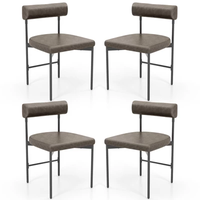 Upgrade your seating arrangements with our 2 pack dining chairs!With curved backrest and wide U-shaped seat, the armless kitchen chairs ensure optimal relaxation. The sponge-filled backrest and seat will provide superior support for your body, making extended sitting periods a breeze. Additionally, the faux PVC leather covering not only adds a touch of elegance but also ensures easy maintenance. Supported by metal legs and fitted with anti-slip pads, the dinette chairs are stable and protective to your floor. Furthermore, the reinforced crossbar and bottom H-shaped frame will enhance the weight capacity. Featuring simple yet elegant style, the modern dining room chair is suitable for the living room, kitchen, or restaurant setting.