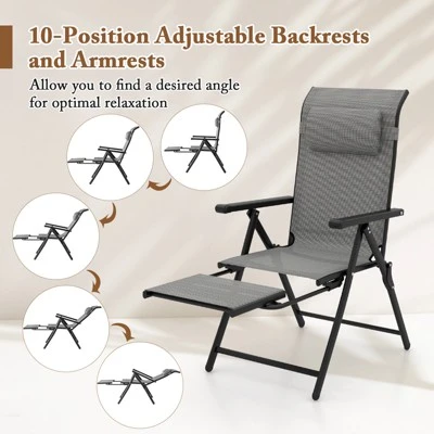 - 10-Position Adjustable Comfort: Featuring 10-level adjustable backrests and armrests, these patio lounge chairs allow you to find a desired angle for optimal relaxation. Whether you are reading, sunbathing, or just relaxing, the sitting or reclining positions meet your varying needs.