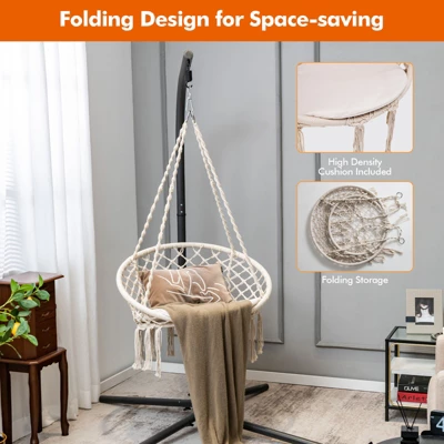 Enjoy the comfortable touch and leisure time in this hammock chair.