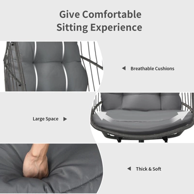 - High Quality Material: Featuring with weather-resistant PE rattan, the egg swing chair offers an incredible service life even under the sun and rain. Besides, rustproof steel frame with sturdy triangular structure enhances its overall stability and life span.