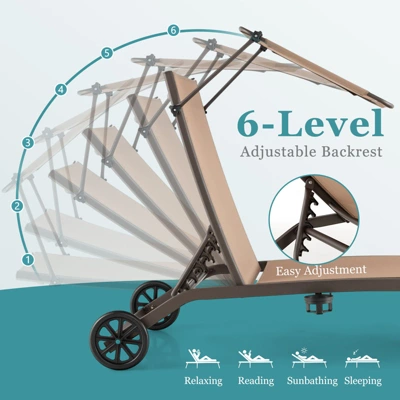 - 6-Position Reclining Backrest: Easily adjust the backrest through six distinct levels (16″ to 38″) to find your perfect angle for reading, napping, or sunbathing.