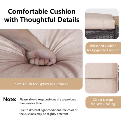 - Ultimate Coziness: The comfortable cushion has been designed with thoughtful details. There is soft touch for optimum coziness and thickened cushion for upgraded comfort. Note: 1) Please always keep cushions dry to prolong their service time. 2) Due to different light conditions, the color of the cushions may be slightly different.