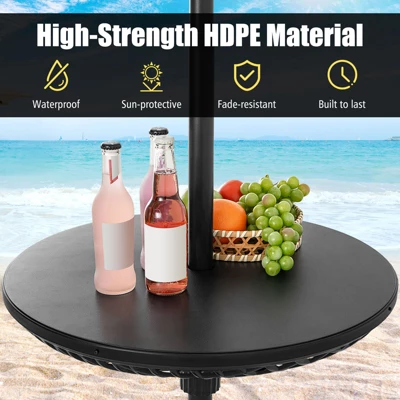 - Solid & Reliable Construction: Crafted from premium ABS material, this patio umbrella table tray is weather-proof, crack-resistant and colorfast, ensuring long-lasting durability. With a reinforced bottom structure for enhanced stability, this table tray will be a reliable addition to your outdoor space.