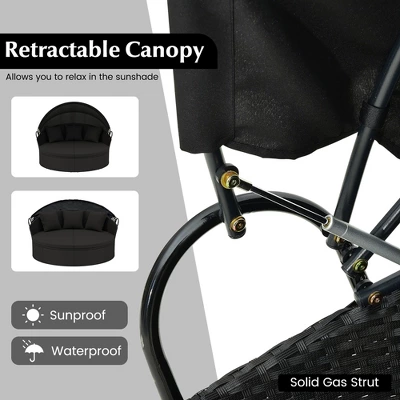 - Adjustable Retractable Canopy: Equipped with a smooth gas strut mechanism, the sunproof and waterproof canopy provides instant shade on hot days or retracts easily for sunbathing.