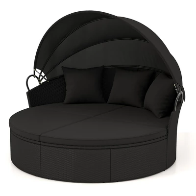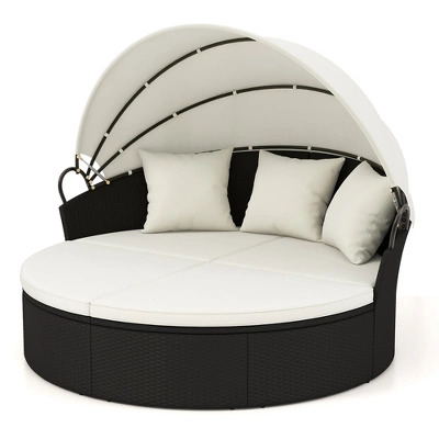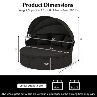 Transform your backyard, poolside, or patio into a private oasis with the Tangkula Patio Round Daybed. Designed for both luxury and versatility, this elegant wicker furniture piece effortlessly transitions from a spacious lounging daybed to a functional two-piece sectional conversation set. Whether you are soaking up the sun or relaxing in the shade, this daybed offers the ultimate retreat for your outdoor space with premium craftsmanship and modern style.