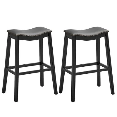 - [ 29″ Height Nailhead Saddle Stools ]: The backless bar stools features a saddle shape, which fits your body’s curve well. With an appropriate height of 29”, you can comfortably sit beside your kitchen island or bar table, and become more relaxed by placing your feet on the 4 footrest.