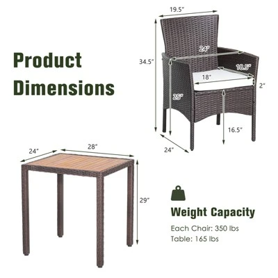 Tangkula Set Of 3 Wicker Dining Set Acacia Wood Table Top W/ Cushioned Chairs Patio Garden -Tangkula Shop GUEST 8b5e53fe 972b 42c5 9985 c74e9a189718