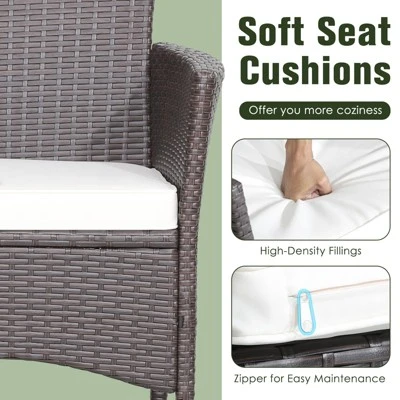 Tangkula Set Of 3 Wicker Dining Set Acacia Wood Table Top W/ Cushioned Chairs Patio Garden -Tangkula Shop GUEST 240c19fd 96b4 44e9 ade6 038b3666de54