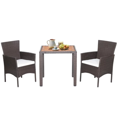 Tangkula Set Of 3 Wicker Dining Set Acacia Wood Table Top W/ Cushioned Chairs Patio Garden -Tangkula Shop GUEST a0d15483 2b6c 4d94 b3ed 6d4c4bf274ee