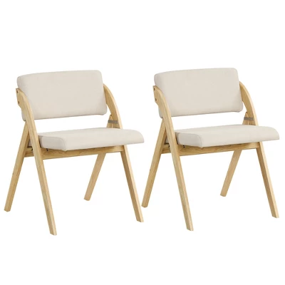 The dining chair set provides a cozy choice for sitting. The soft polyester fabric and elastic sponge fill of the thickly padded backrests and seats feel comfortable and are long-lasting for a long-term use. The kitchen chairs boast sturdy rubber wood legs that offer stability and elegance, supporting up to 355 lbs. Perfect for small spaces, these foldable chairs can be used in various settings beyond the dining room. No assembly required – simply unfold and enjoy a quick and convenient upgrade to your dining space.