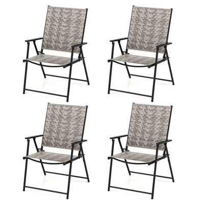 Tangkula Set Of 4 Folding Chairs W/ Armrests Metal Frame For Garden No Assembly Patio