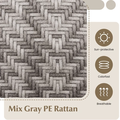 • Mix Gray PE Rattan: The seating areas are designed with selected PE rattans, which take advantage of being sun-protective and colorfast for better outdoor adaptability. And the rattan is breathable as well.