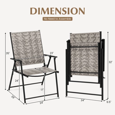 • Product Dimension: With 24”W x 26”D x 35”H unfolding dimension and 17” seat height, these ergonomic patio chairs match your dining table (not included) perfectly. No need to assemble.