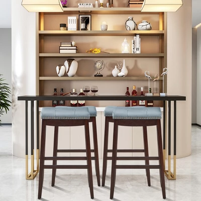 Our modern bar stool is made of 100% natural rubber wood, compared with other wood, rubber wood features better durability and toughness. So, the sturdy and thickened rubber wood legs will support you powerfully when you sit in the front of bar counter to enjoy a drink. The seat features soft upholstery and high resilience foam shall let you feel more comfortable. 4-Sided footrest can not only rest your feet but also plays the role of reinforcement. Stylish appearance makes it a perfect complement to either your dining table or kitchen counter. You can use it as bar stool to let yourself enjoy a drink or as dining stool to entertain your guests.