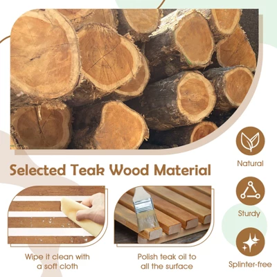 - Maintenance: Periodic application of teak oil recommended to preserve natural color and luster.