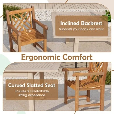 Transform your backyard, patio, or poolside into a sanctuary of natural elegance with the Tangkula Teak Wood Outdoor Dining Chair. Meticulously crafted from high-quality Indonesian teak, this chair blends timeless aesthetics with superior durability, offering a sophisticated seating solution that respects the beauty of the outdoors while providing a sturdy, reliable place to relax for years to come.
